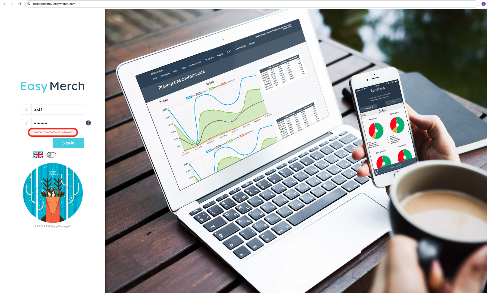 If the red error «Incorrect login or password» appears, check that the username and password fields have been entered correctly