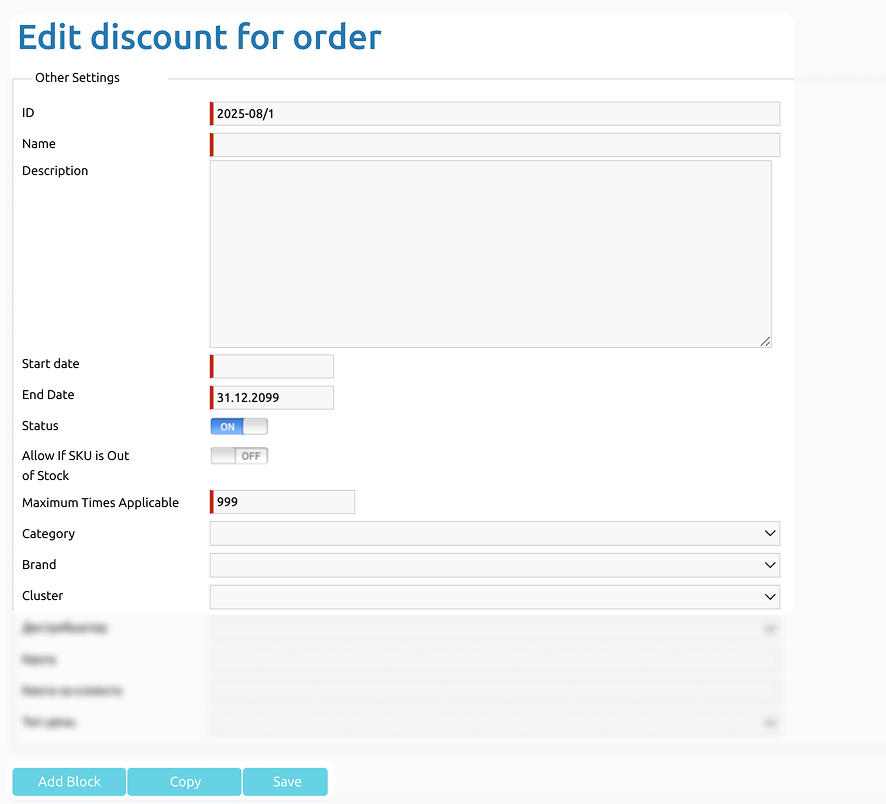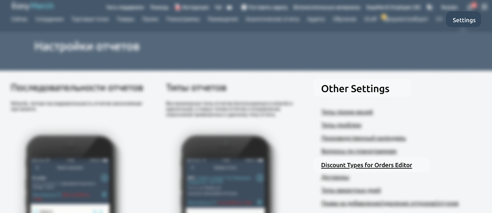 Open the "Settings" tab and in the "Other settings" section, select "Discount Types for Orders"